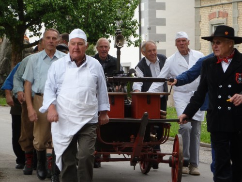 Alterskameraden vertreten die FW Salem beim Handdruckspritzenwettbewerb