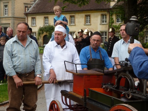 Letztmalig war die Spritze im Juli 1952 bei einem Scheunenbrand im Einsatz, ehe sie dann nach Eröffnung des Feuerwehrmuseums im Schloss Salem den Museumsbesuchern etliche Jahre für Pump-versuche zur Verfügung stand.