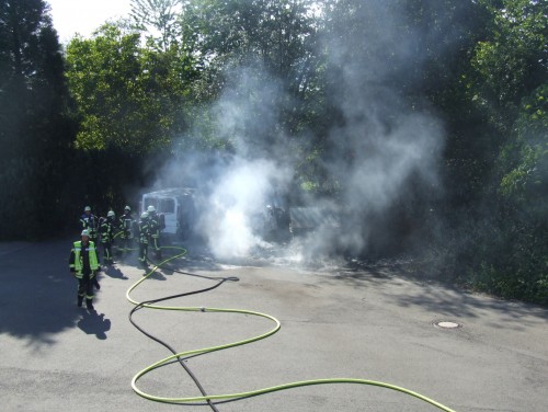 Glücklicherweise konnte kurz nach dem Eintreffen der ersten Kräfte Entwarnung gegeben werden. Es brannte ein Wohnwagen im Außenbereich in voller Ausdehnung, wobei das Feuer bereits auf einen direkt daneben stehenden Transporter übergegriffen hatte. Sofort wurde vom Angriffstrupp des LF16 mit dem Schnellangriff die Brandbekämpfung eingeleitet, während der 2te Trupp sich mit Atemschutz ausrüstetet und ebenfalls mit einem C-Rohr die Brandbekämpfung unterstützte. Bereits nach kurzer Zeit war der Brand soweit unter Kontrolle, dass ein großer Teil der alarmierten Kräfte aus dem Einsatzgeschehen herausgelöst werden konnten und die Einsatzstelle verlassen konnten. Nachdem die Nachlöscharbeiten abgeschlossen waren, konnten auch die letzten Kräfte nach etwas mehr als einer Stunde die Einsatzstelle verlassen und ins Gerätehaus einrücken. Weitere Kräfte vor Ort: Landespolizei BW, Rettungsdienst | ||