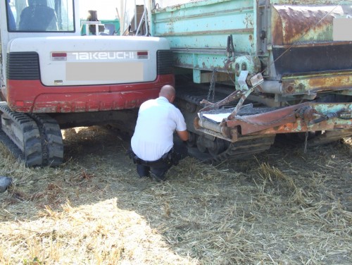 Vor Ort stellte sich heraus, dass die Person bereits durch den Rettungsdienst befreit worden war und von diesem notärztlich versorgt wurde. Beim Zurücksetzen eines Raupenkippers geriet der betroffene Arbeiter zwischen diesen und einen abgestellten Bagger und wurde im Bereich des Oberschenkels eingeklemmt und schwer verletzt. Nach der notärztlichen Erstversorgung vor Ort wurde der verletzte Arbeiter mit dem Rettungshubschrauber in einen Spezialklinik geflogen. Der Fahrer des Kippers erlitt einen Schock und wurde durch einen Krankentransportwagen in ein Krankenhaus gebracht. Neben der Feuerwehr Salem und dem Rettungsdienst war die Polizei zur weiteren Ermittlung der Unfallursache vor Ort. | ||