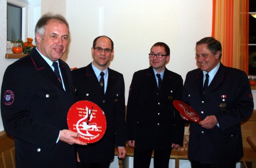 Am Freitag, den 6.3.2014, traf sich die Abteilung Beuren der Freiwilligen Feuerwehr Salem in der Molke in Altenbeuren. Abteilungskommandant Martin Weishaupt hatte zur jährlichen Jahreshauptversammlung geladen. Er berichtete zunächst über wichtige Entwicklungen. Nachdem im Juni 2014 im Gemeinderat der einstimmige Beschluss für den Bau einer neuen Unterkunft für die Feuerwehr am DGH in Beuren gefasst worden ist, wird nun im März mit den Arbeiten begonnen. Der Einzug sei für den Frühherbst 2015 geplant. Seit Januar gehen Feuerwehrkameraden in Beuren und Altenbeuren von Haustür zu Haustür um für neue Mitglieder zu werben. Diese sei dringend nötig, um den zukünftigen Herausforderungen noch besser gerecht zu werden, so Weishaupt. Im Anschluss stand der Bericht des Schriftführers Hans Schwehr über die Aktivitäten des abgelaufenen Jahres. So gab es neben der Proben- und Einsatztätigkeit viel weitere Veranstaltungen im Terminkalender. Nachdem das gut besuchte Frühlingsfest ein voller Erfolg war, standen über den Sommer hin Brandschutzerziehung im Kindergarten, Feuerwehr-Wettkämpfe in Owingen und die traditionellen Ferienspiele auf dem Programm. Anfang November geleiteten viele Feuerwehrleute die Alterskameraden Johann Brunner und Werner Näpple zu ihrer letzten Ruhestätte. Der Bericht endete mit der Schilderung des interessanten Abteilungsausfluges zum Drehleiterhersteller Magirus nach Ulm. Gesamtkommandant Timo Keirath bedankte sich in seinem Grußwort für die Einladung und freute sich über die positiven Nachrichten für die Abteilung Beuren. So konnte er auch bezüglich des Kaufes des gebrauchten Löschgruppenfahrzeug LF8/6 der Feuerwehr Immenstaad Vollzug durch die Gemeinde melden. Das Fahrzeug steht voraussichtlich im Frühsommer 2016 der Abteilung zur Verfügung. Nach weiteren Grußworten des Musik- und des Narrenvereins standen Ehrungen auf dem Programm. Lothar Schobloch und Klaus Jerg gehen altersbedingt in den wohlverdienten Feuerwehrruhestand und wurden schweren Herzens in die Altersabteilung entlassen. Als Dank für treue Dienste wurde Ihnen eine Wanduhr mit Feuerwehrmotiv überreicht. Wieder schafften es 3 Kameraden für regelmäßigen Probenbesuch – unerlässlich für eine schlagkräftige Feuerwehr – vom Kommandanten mit einer kleinen Aufmerksamkeit belohnt zu werden. Ein Kamerad wurde hierbei zum vierten Mal hintereinander ausgezeichnet. Hiermit endete die Hauptversammlung der Abteilung Beuren und ihre Mitglieder freuen sich auf ein spannendes Jahr 2015.