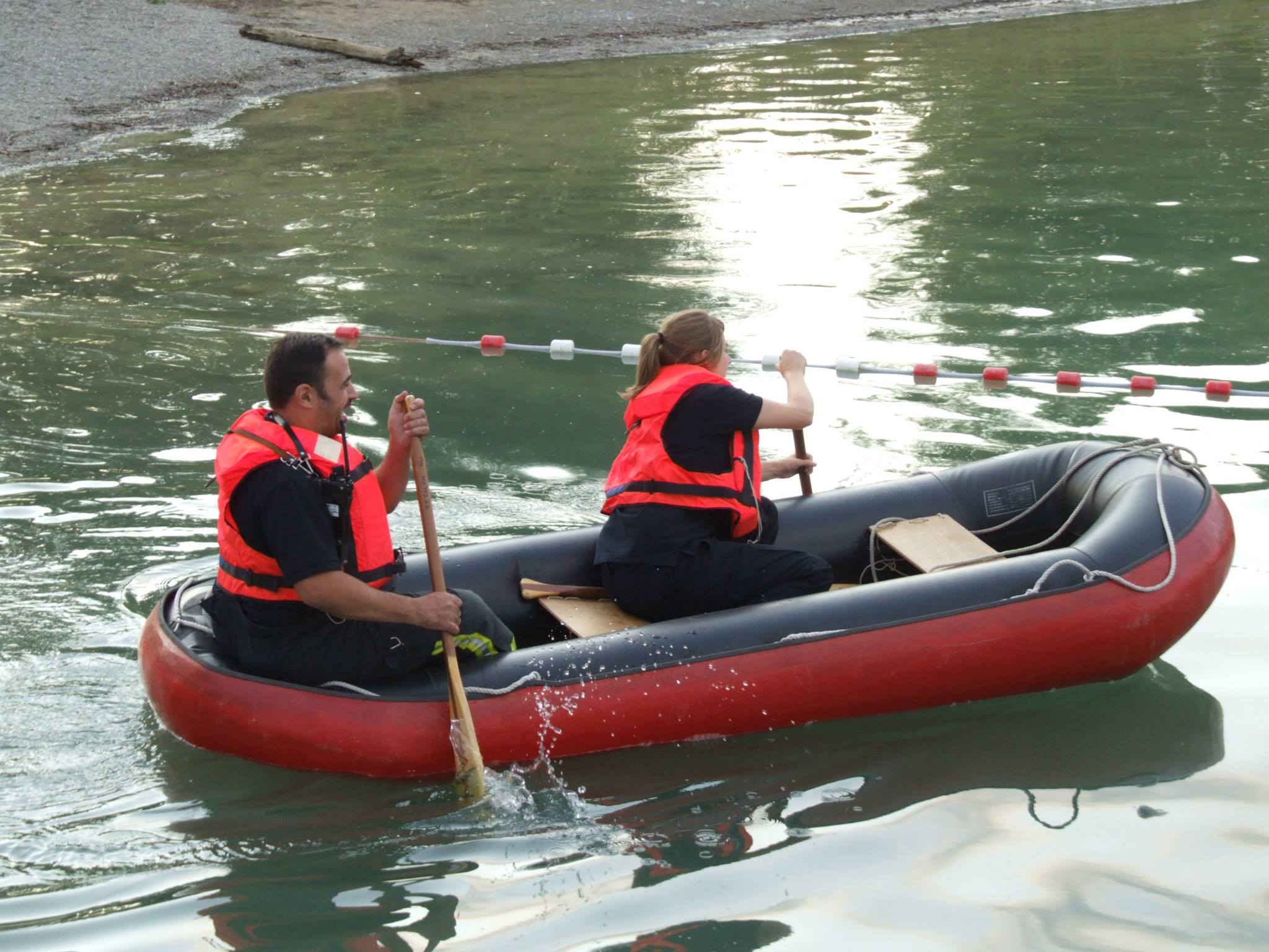 tatsächlich praktischen Teil der Personensuche zu organisieren. Dazu wurden Menschensuchkette gebildet und die begehbare Uferrand Schritt für Schritt abgeschritten. Im tieferen Gewässerbereich, waren Taucher der Deutschen Lebensrettungsgesellschaft (DLRG) eingesetzt sowie ein Boot zur weiteren Koordination.