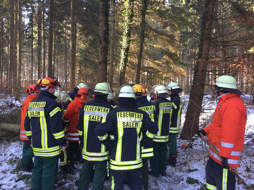 Für die technische Hilfeleistung, bei denen Bäume beteiligt sind, benötigt die Feuerwehr spezielle Wissen. Diese Wissen erwarben an zwei aufeinander folgenden Tagen 17 Mitglieder bei einem Motorkettensägenlehrgang, welcher am Standort durchgeführt wurde. Neben dem "Schulbankdrücken" war auch Praxis angesagt. Dank der Markgräflich Badischen Verwaltung und der Waldplus GmbH, welche ihren Privatwald zur Verfügung gestellt hatte, konnten die Teilnehmer der Feuerwehr Salem das erlernte theoretische Wissen ausgiebig praxisnah üben.