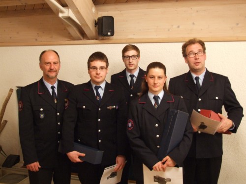 Zur Oberfeuerwehrfrau bzw. zum Oberfeuerwehrmann wurden befördert Jenny Löhle, Andreas Junietz, Tobias Maiwald, Matthias Nardo und Stefan Amann.