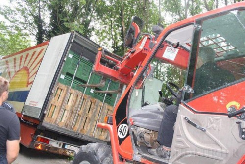 Nach vorliegenden Informationen, hatte der LKW Fahrer dem Navigationssystem zu sehr vertraut. Nach zuvoriger Erkundung durch den Einsatzleiter wurde für den Einsatz H1 - Technische Hilfeleistung alarmiert sowie der Fachberater THW. Nach telefonischer Rücksprache mit diesem, erfolgte eine weitere Alarmierung für eine Gruppe vom THW mit der Anforderung mehrerer Greifzüge. Der LKW wurde von den Einsatzkräften der Feuerwehr Salem zunächst hangabseitig mit Holz unterbaut um den Trailer zu sichern und Hangaufwärts mit einem Greifzug um die Lage stabil zu halten. Nach Ankunft des THW wurden zwei weitere Greifzüge zur Sicherung in den Einsatz genommen. Parallel zu den Sicherungsarbeiten wurden ein Teleskopstapler und ein Gabelstapler eines ansässigen Unternehmens, sowie ein Ersatzfahrzeug zur Aufnahme der Ladung organisiert. Nachdem die Sicherungsarbeiten abgeschlossen waren, konnte mit der Entladung der Obst-Großkisten (je 270 - 300kg) und insgesamt 78 Stück begonnen werden. Nach der Löschung der Fracht konnte die LKW Zugmaschine inkl. Trailer ohne weitere Beschädigungen wieder komplett auf die Strasse gezogen werden. Weitere Bilder folgen. Zur Info: Südkurier: http://www.suedkurier.de/region/bodenseekreis-oberschwaben/salem/Apfellaster-kommt-beim-Tobelhof-von-der-Strasse-ab;art372491,7227832 http://www.suedkurier.de/region/bodenseekreis-oberschwaben/salem/Apfellaster-kommt-beim-Tobelhof-von-der-Strasse-ab;art372491,7227832,D::Apfellaster-faehrt-sich-fest;cme1332080,9028260? utm_source=Apfellaster+f%E4hrt+sich+fest&utm_medium=Apfellaster+kommt+beim+Tobelhof+von+der+Stra% DFe+ab&utm_campaign=Bildergalerie | ||