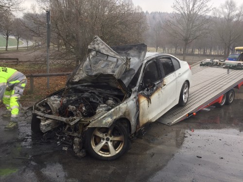 Zu einem PKW Brand auf Grund eines technischen Defekts am Affenberg, wurde die Abteilung