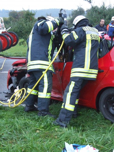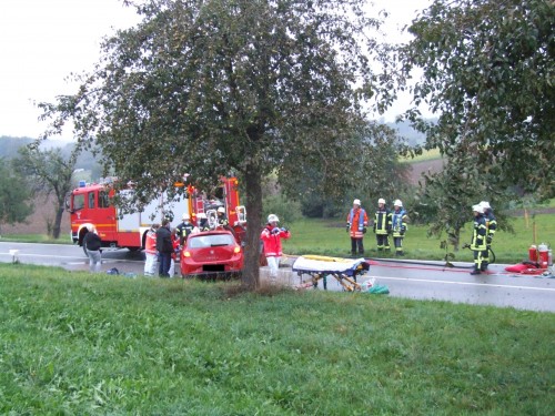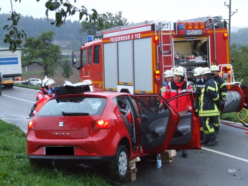Die eingeklemmte Person wurde durch den Rettungsdienst notfallmedizinisch versorgt und anschließend von der Feuerwehr mit hydraulischem Rettungsgerät aus ihrem Fahrzeug befreit. Ermittlungen zum Unfallhergang wurden durch die anwesenden Streifen der Landespolizei eingeleitet. Für die Dauer der Rettungsarbeiten und die Unfallaufnahme war die L200a in beiden Richtungen voll gesperrt. Vor Ort waren 23 Kräfte der Feuerwehr im Einsatz; weitere 8 waren im Feuerwehrhaus in Bereitschaft. Weiter Kräfte vor Ort: Kreisbrandmeister, Rettungsdienst mit 2 RTW und einem NEF, Landespolizei Ba-Wü, Rettungshubschrauber Christoph 45 | ||